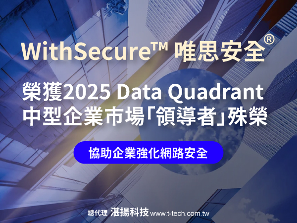 WithSecure™唯思安全® 榮獲2025年Data Quadrant 中型企業市場 「領導者」殊榮 以最高分9.2奪冠